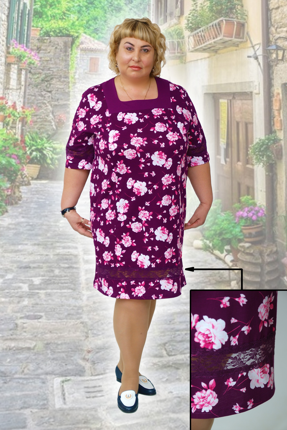 Женская туника с декоративной отделкой по низу изделия и рукавам. Туника полуприталенного силуэта с горловиной-карэ