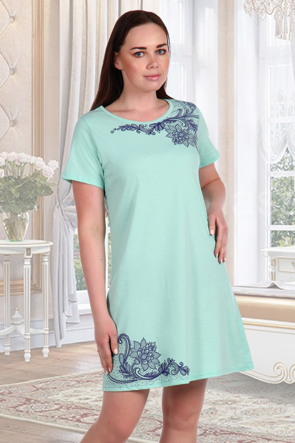 Сорочка из натурального хлопка с нежным принтом. Идеально полходит для домашнего отдыха