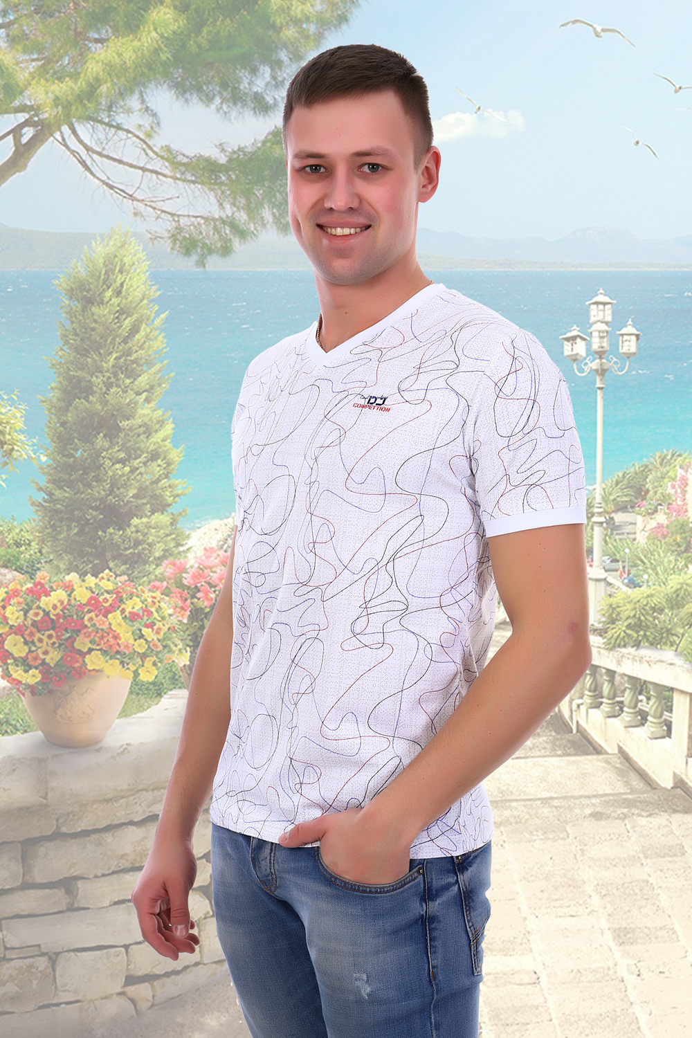Молодежная футболка классического кроя с необычным рисунком на ткани