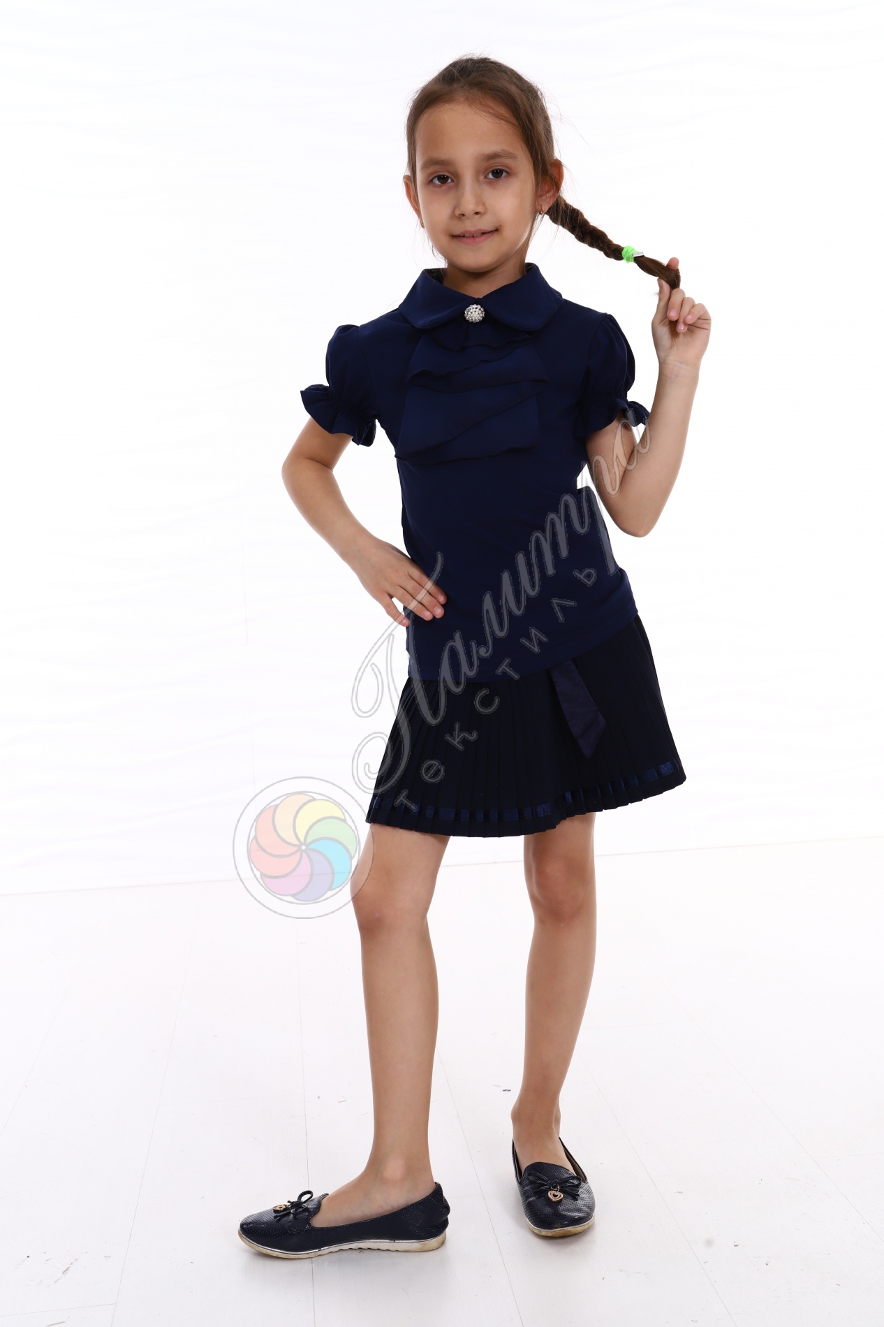 Красивая и очень милая блузка для девочки из эластичного хлопка. Симпатичный рукав "фонарик"на резиночке, воротник "жабо" из шифона и украшение - брошка делают модель изящной и великолепной! Для удобства воротничок сзади застёгивается на две пуговки. Ткань мягкая и очень приятная к телу.