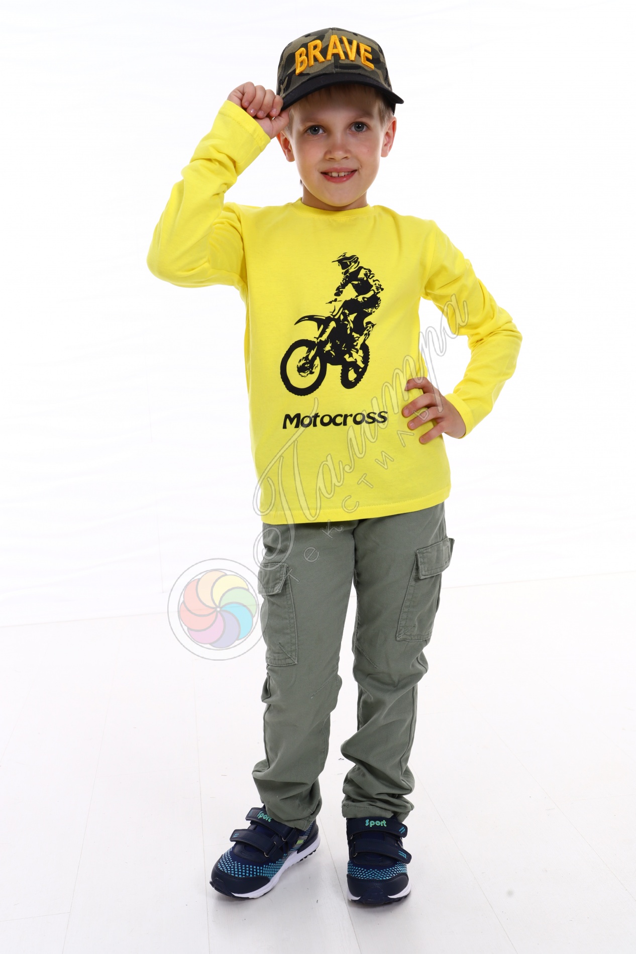 Футболка для мальчика с длинным рукавом из мягкого хлопка, спортивная печать задаёт стиль. Хорошо сочетается с джинсами и брюками. Для прохладных летних вечеров незаменимая вещь. Ткань кулирка.