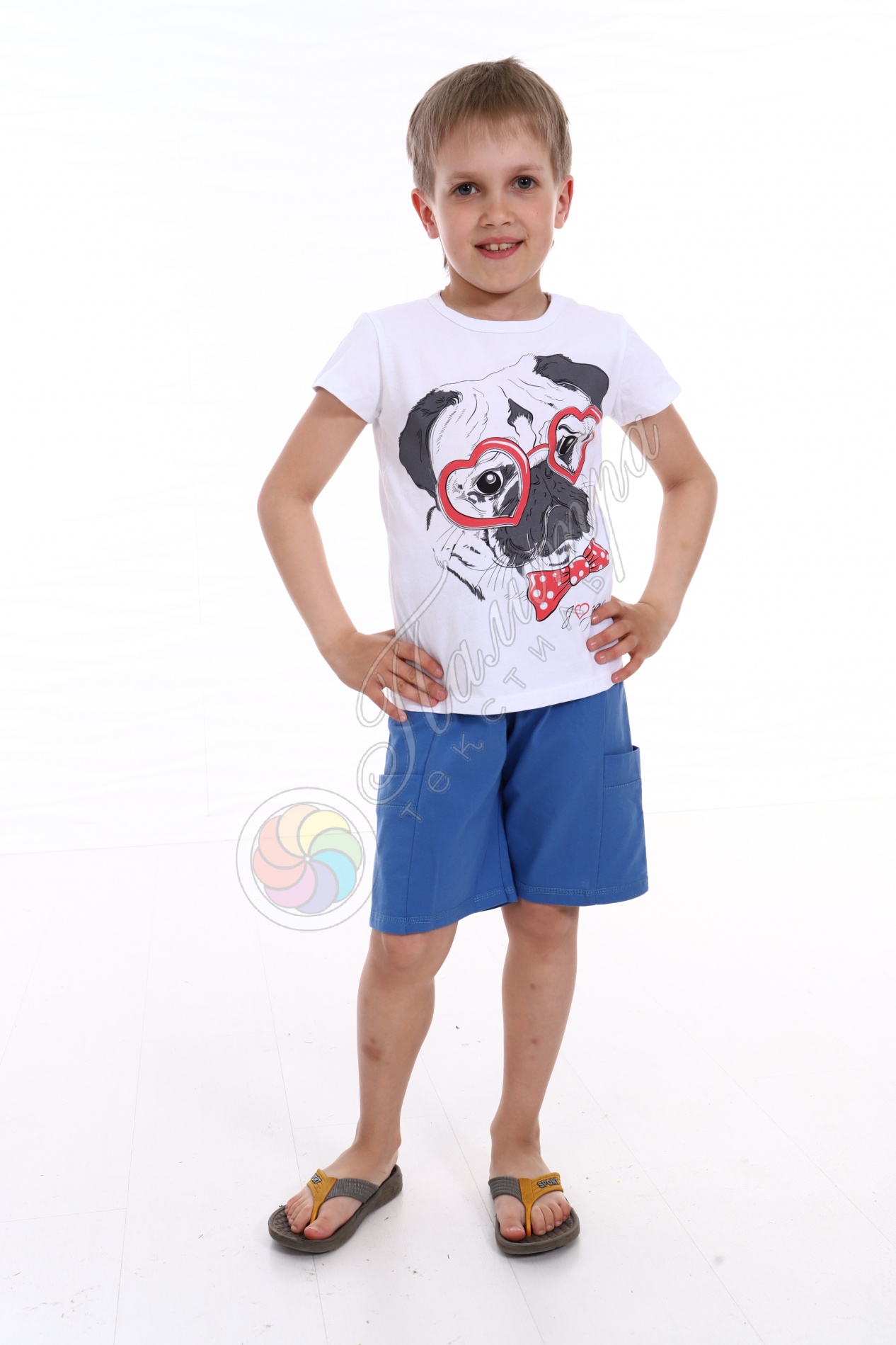 Футболка из кулирки с лайкрой с очаровательной печатью - "влюбленный мопс"