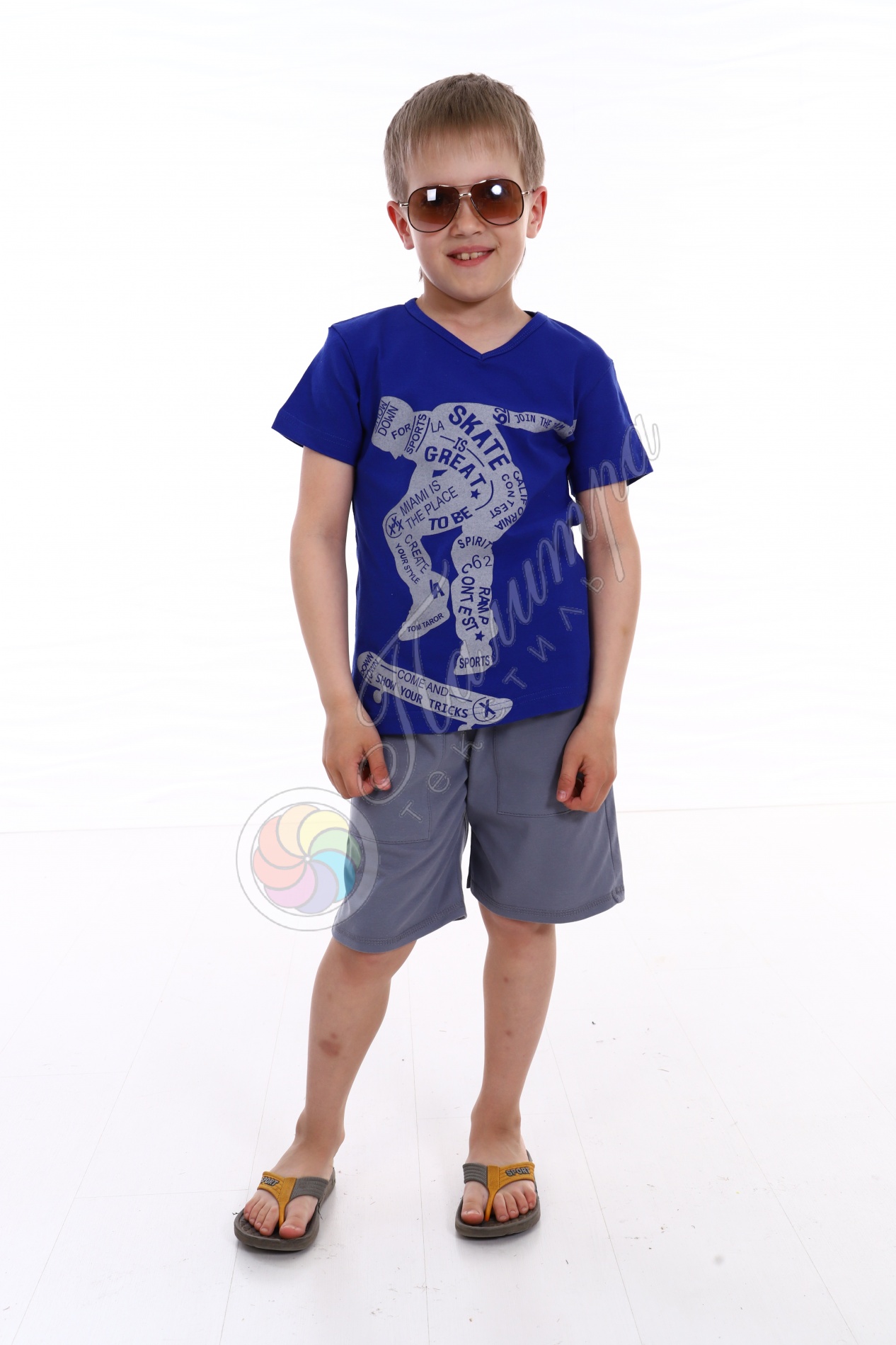 Стильная, яркая футболка с "уличным" принтом из кулирки с лайкрой
