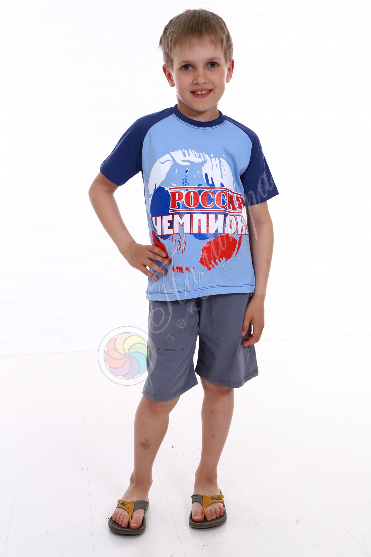 Хлопковая комбинированная футболка для мальчика в спортивном стиле, рукав - реглан, воротник из узкой рибаны. Ткань кулирка.