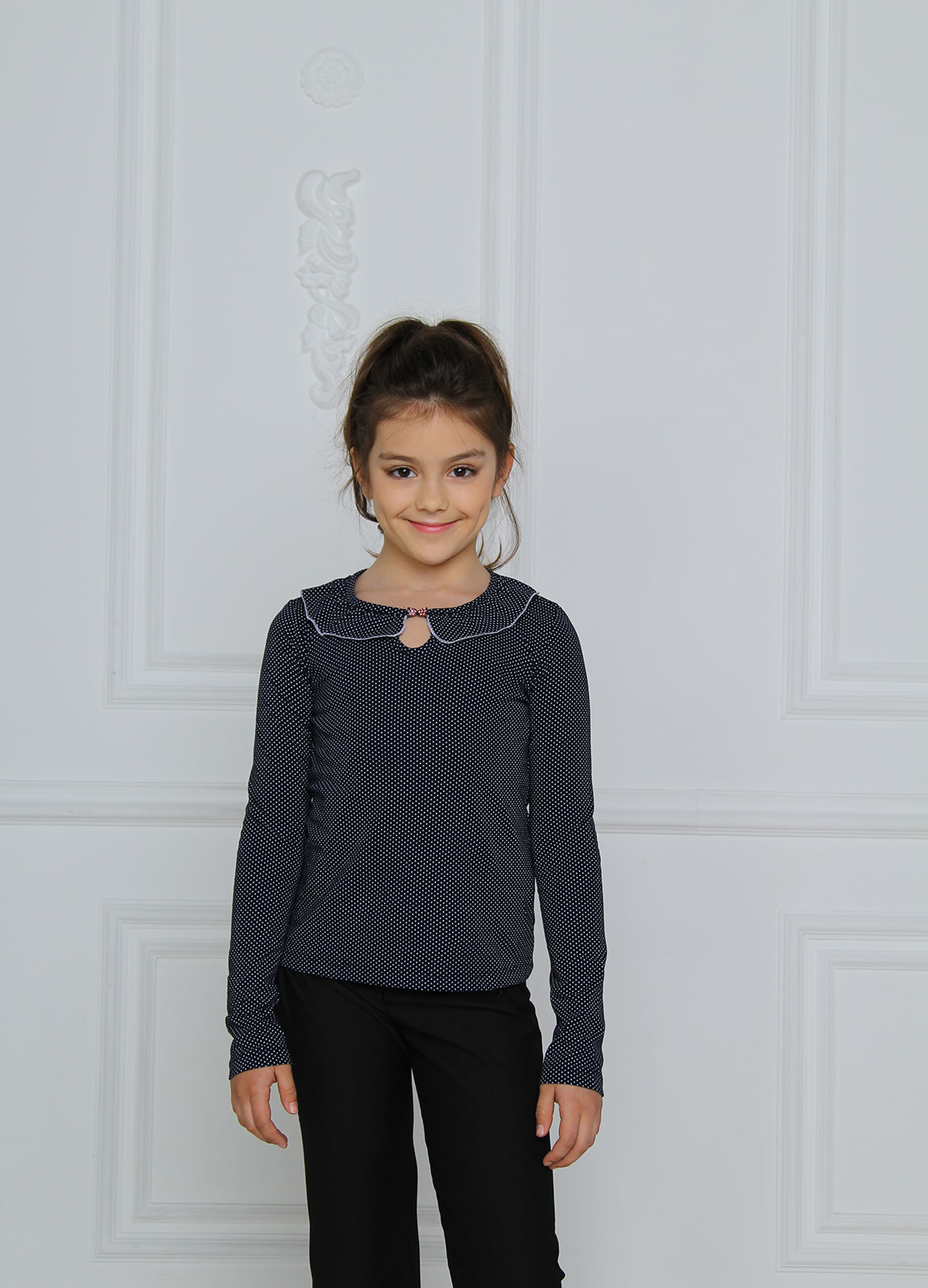 Трикотажная блузка с длинным рукавом. Застежка спереди. (Застежка -металлофурнитура может отличаться от фото) . Возможно наличие страз.