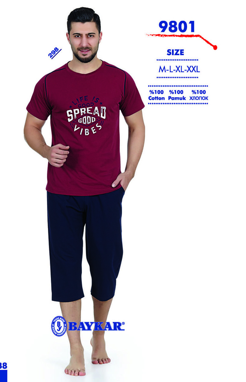 Шикарный мужской комплект (арт. 9801) - это стильная и современная одежда, в которой удобно отдыхать. Модная продукция бренда Baykar состоит из двух частей. Свободные брюки ниже колен не сковывают движений и отлично сидят по фигуре. Классическая футболка до середины бедра и с коротким рукавом. Лаконичный декор в виде фирменного принта на груди. Изделие сшито из мягкой хлопковой ткани с эластаном, поэтому отлично держит форму, не линяет после стирки. В магазине товар представлен в бордовом цвете и четырех актуальных размерах.