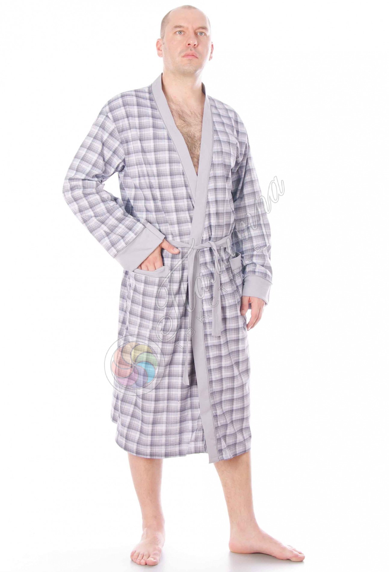 Мужской лёгкий хлопковый халат на запах, с удобными накладными карманами. Отличный вариант для сауны или баньки! Ткань кулирка.