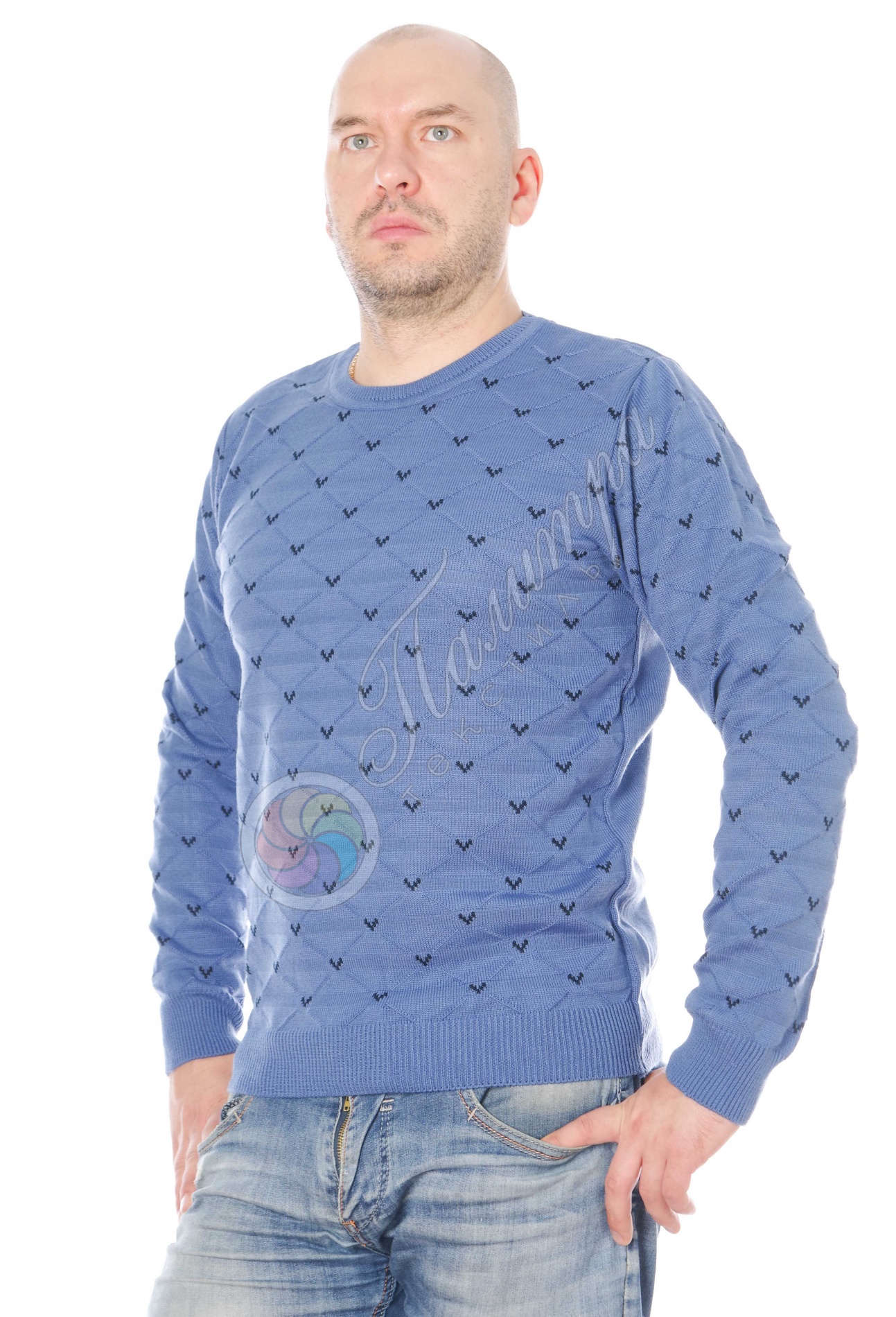 Мягкий джемпер с рисунком - отличный вариант на каждый день для работы и отдыха. Рукава и низ модели на манжете, вырез округлый. Хорошо сочетается с джинсами и брюками.
