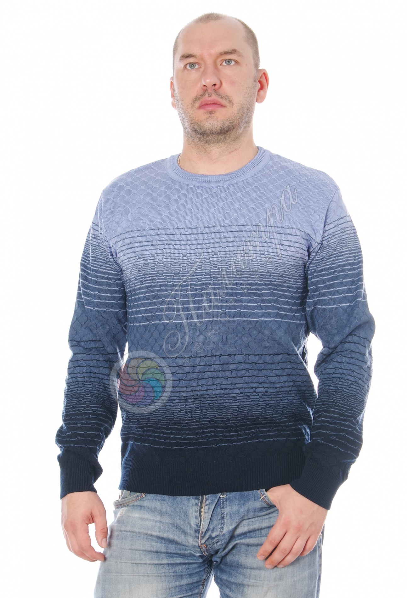 Мягкий джемпер с оригинальным рисунком - отличный вариант на каждый день для работы и отдыха. Рукава и низ модели на манжете, вырез V-образный. Хорошо сочетается с джинсами и брюками.