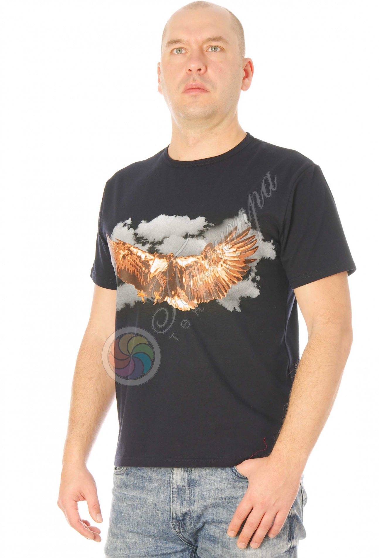 Футболка для мужчин прямого кроя из хлопка, принт в брутальном стиле "Орёл" для настоящих мужчин. Модель укороченная, ткань кулирка.