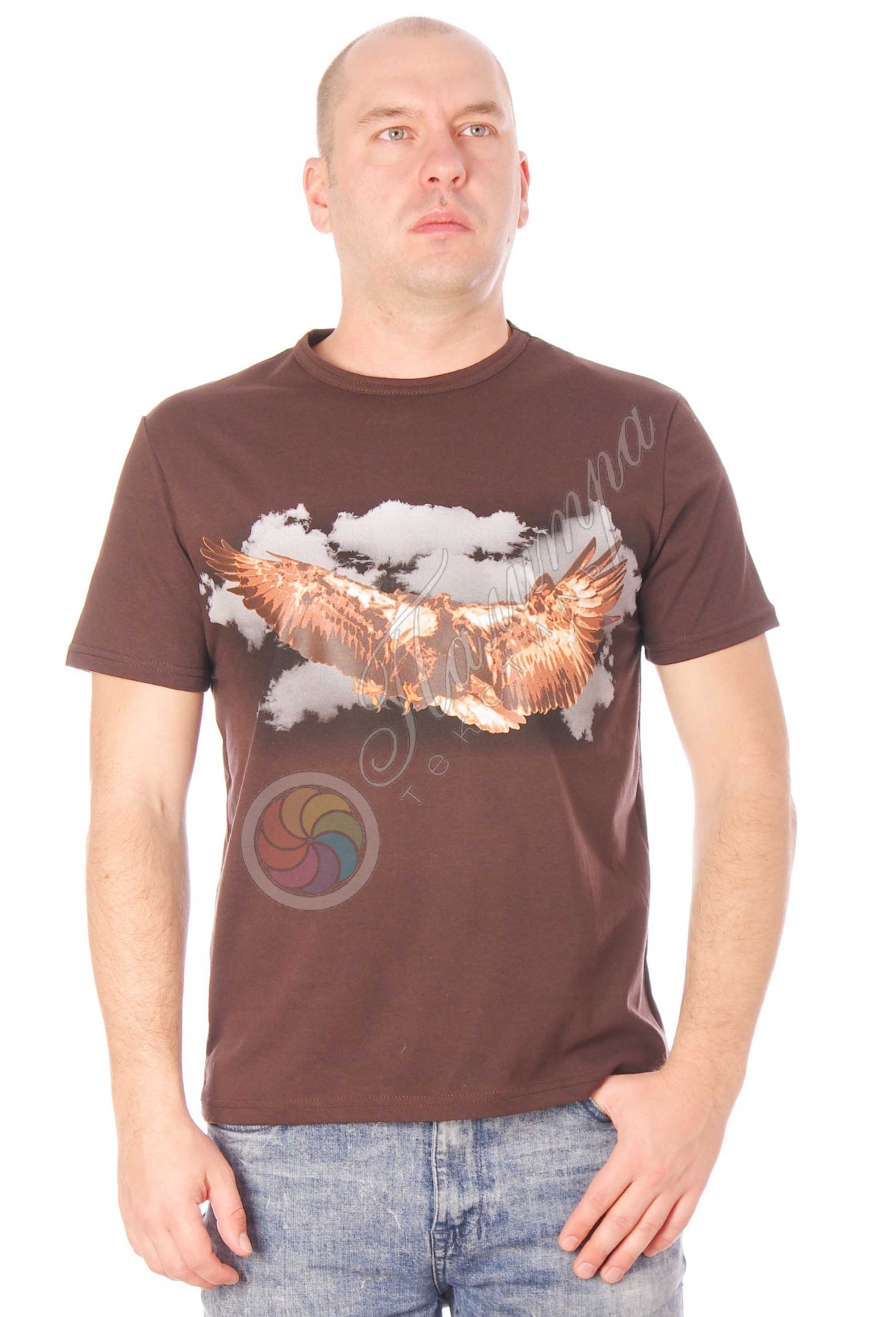 Футболка для мужчин прямого кроя из хлопка, принт в брутальном стиле "Орёл" для настоящих мужчин. Модель укороченная, ткань кулирка.