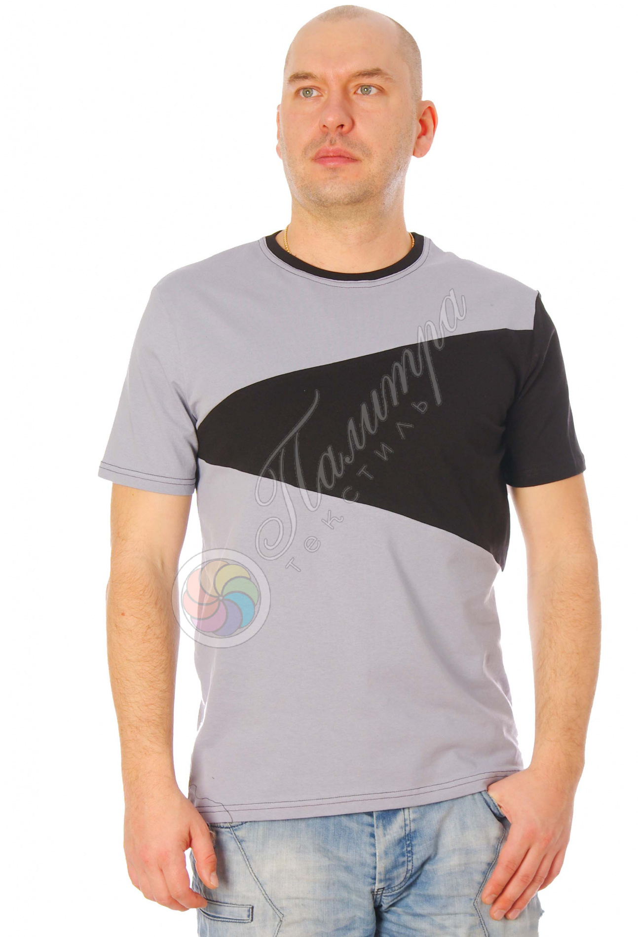 Стильная футболка из комбинированных тканей оригинального кроя из хлопка. Ткань кулирка. Модные весенние оттенки и красивое сочетание цветов - отличный вариант как к джинсам, так и шортам на весенне-летний сезон.