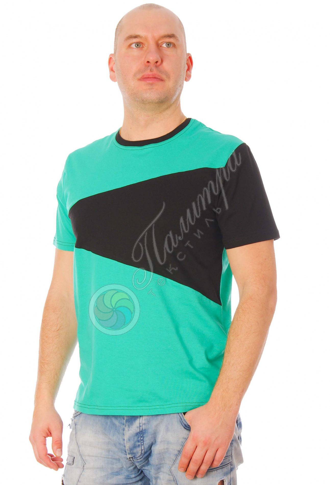 Стильная футболка из комбинированных тканей оригинального кроя из хлопка. Ткань кулирка. Модные весенние оттенки и красивое сочетание цветов - отличный вариант как к джинсам, так и шортам на весенне-летний сезон.