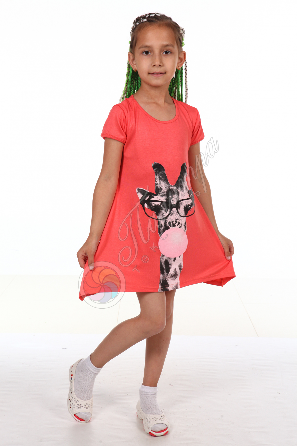 Стильная туника для девочек с забавным принтом "Жирафик с жевачкой". Модель расклешёная от линии талии, с модным асимметричным низом. Можно носить с лосинами или отдельно. Ткань лёгкая, мягкая вискоза.