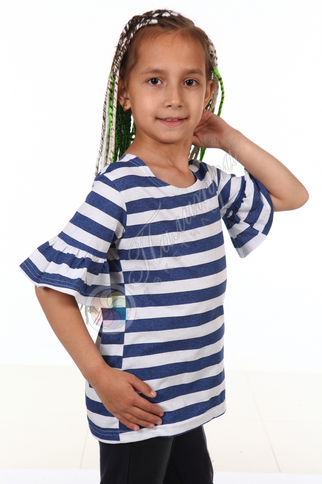 Нельзя представить себе летний гардероб без футболки в полоску! Но как разнообразить обычную модель? Расклешёный, летящий рукав "колокольчик" - это отличный вариант! Эту футболку можно сочетать с любой одеждой, образ будет всегда красивым и модным! Ткань кулирка.
