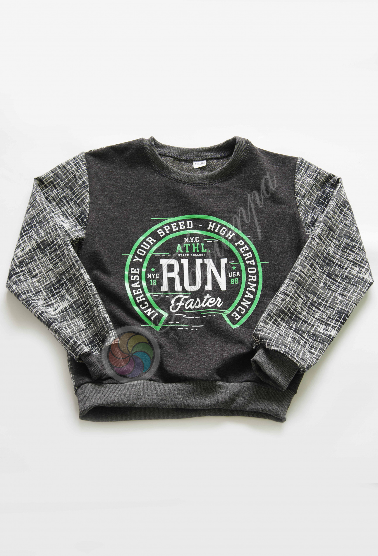 Модный свитшот на манжете с печатью. Можно сочетать со спортивными брюками или джинсами. Ткань петельчатый футер, не вытягивается и не садится после стирки. Отделка воротника и манжеты из рибаны. Под эту модель Вы можете выбрать на сайте спортивные брюки в тон и получится костюм.