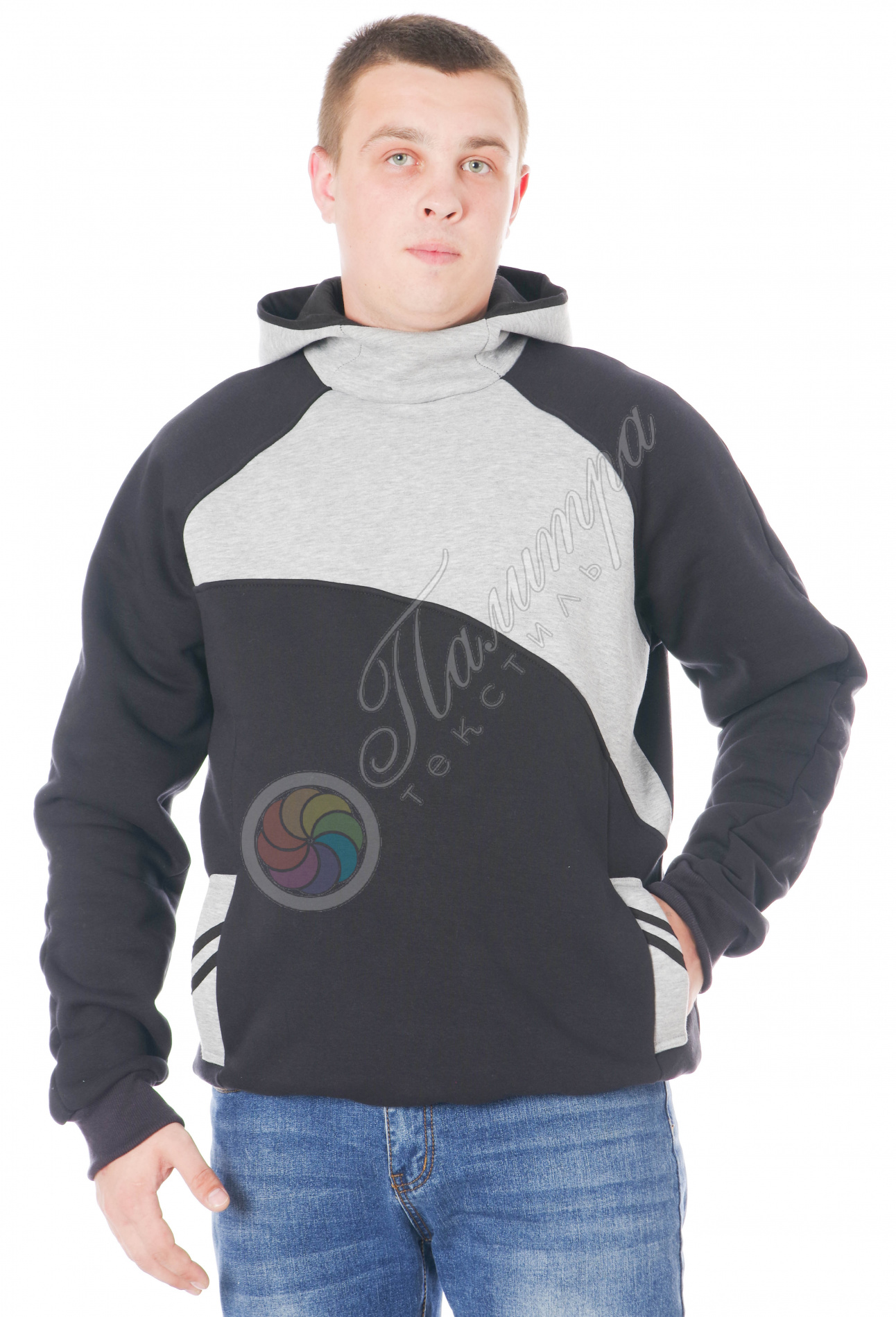 Теплая спортивная толстовка на манжете сложного кроя с отрезными детяли, удобные боковые карманы. Капюшон с подкладкой из кулирки и с высокой "стойкой" хорошо защищает от ветра. Для манжетов и отделки используется эластичная рибана. Ткань супер-футер, плотность 320-350 г/м2. Модель хорошо подходит на каждый день к спортивным брюкам и джинсам.