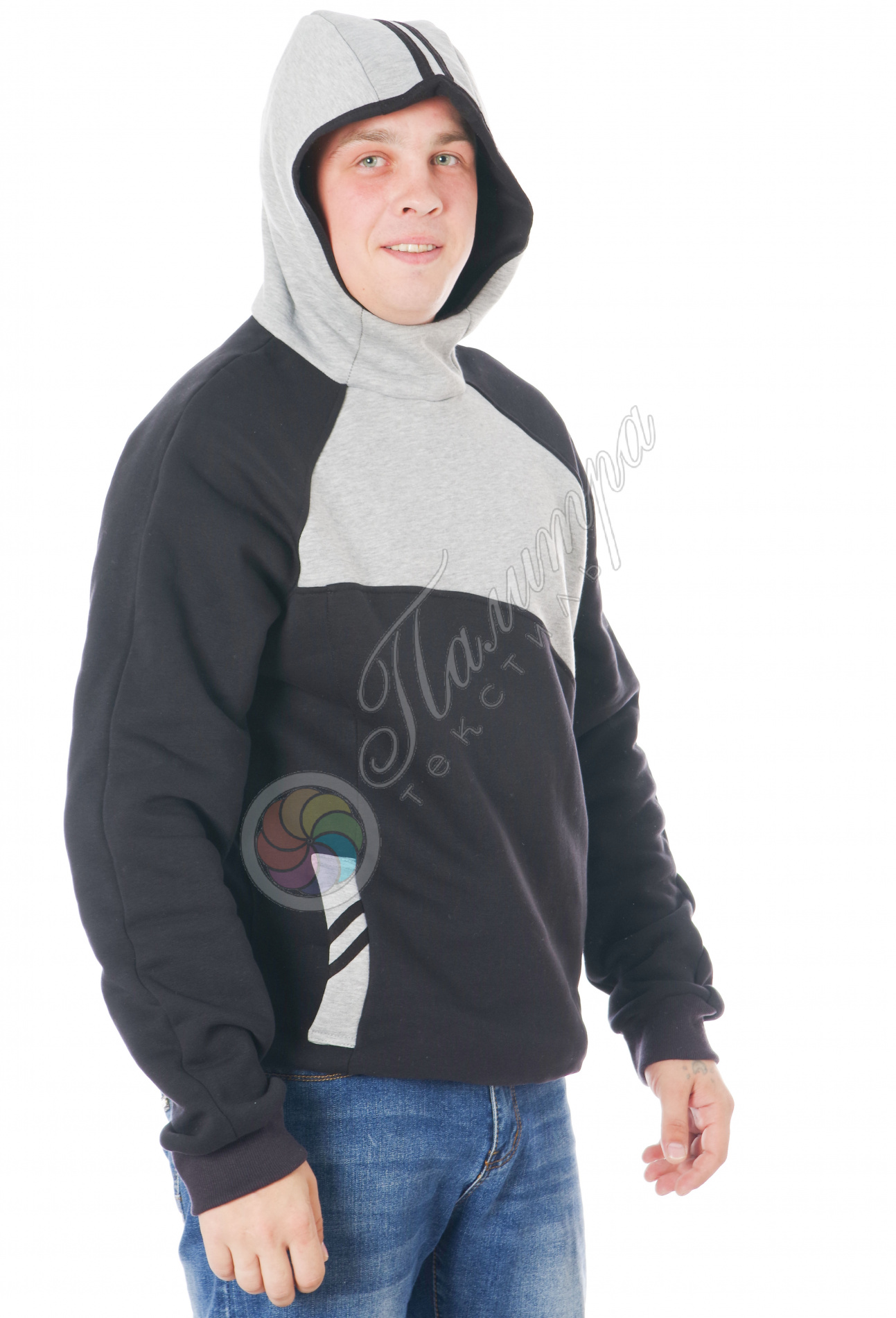 Теплая спортивная толстовка на манжете сложного кроя с отрезными детяли, удобные боковые карманы. Капюшон с подкладкой из кулирки и с высокой "стойкой" хорошо защищает от ветра. Для манжетов и отделки используется эластичная рибана. Ткань супер-футер, плотность 320-350 г/м2. Модель хорошо подходит на каждый день к спортивным брюкам и джинсам.