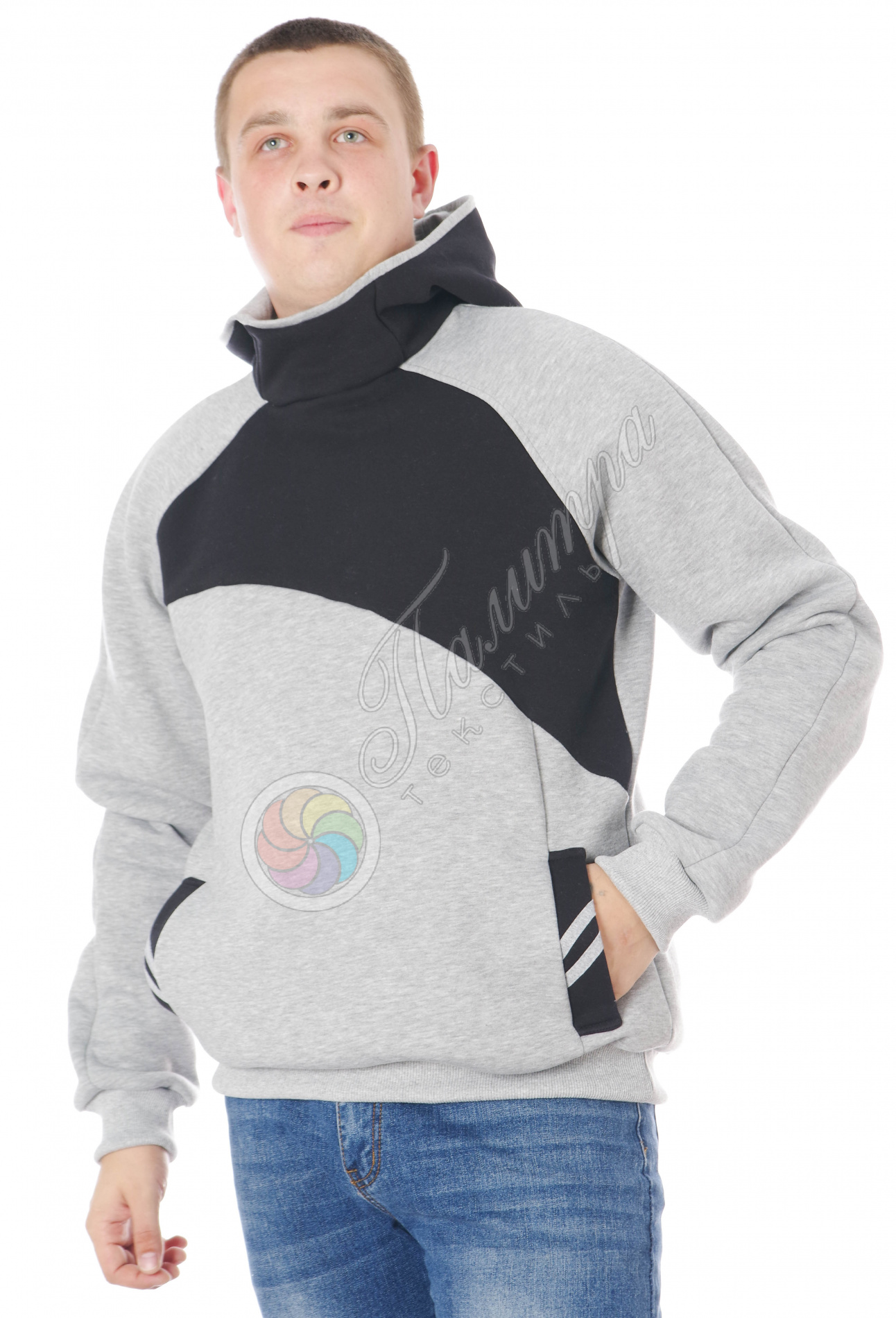 Теплая спортивная толстовка на манжете сложного кроя с отрезными детяли, удобные боковые карманы. Капюшон с подкладкой из кулирки и с высокой "стойкой" хорошо защищает от ветра. Для манжетов и отделки используется эластичная рибана. Ткань супер-футер, плотность 320-350 г/м2. Модель хорошо подходит на каждый день к спортивным брюкам и джинсам.
