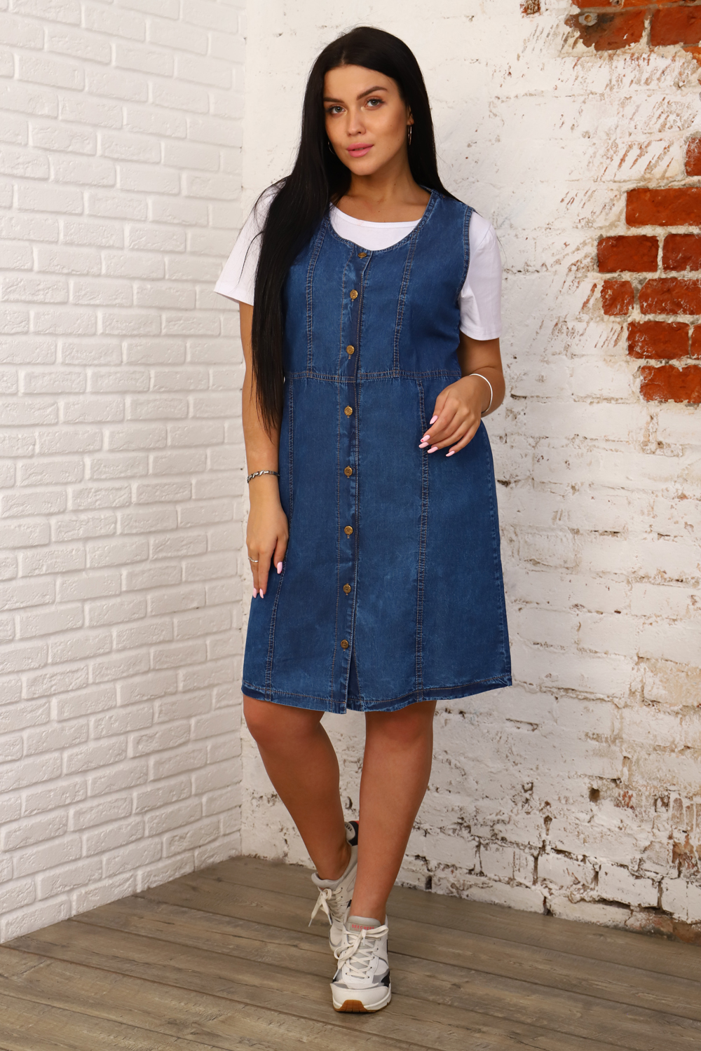 Сарафан джинсовый на пуговицах с отделочной строчкой.